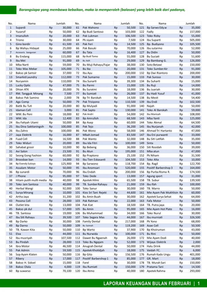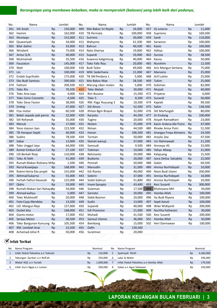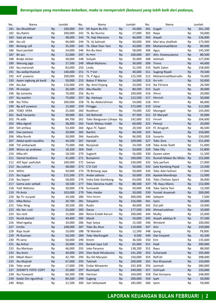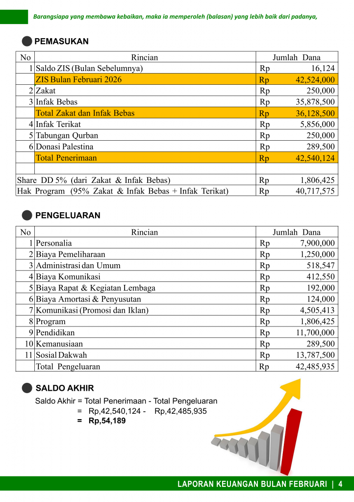 Alhamdulillah, pengumpulan donasi dari para mitra kebaikan Balai Dakwah Banjarnegara pada bulan Februari 2026 telah selesai kami tunaikan pemanfaatannya. Kepada seluruh mitra kebaikan kami ucapkan jazakumulloh khoir dan berikut ini kami sampaikan laporannya, semoga bermanfaat.